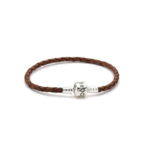 Pandora Bracelet in Simple Braided Coffee Leather with Pandora Clasp in Sterling Silver 590702CRDS