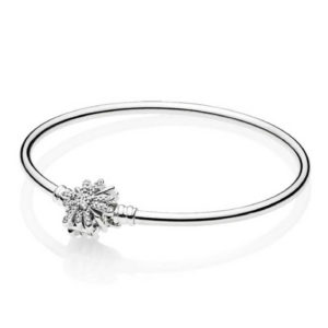Pandora Silver bangle with firework clasp with clear cubic zirconia and engraving 597563CZ-16cm