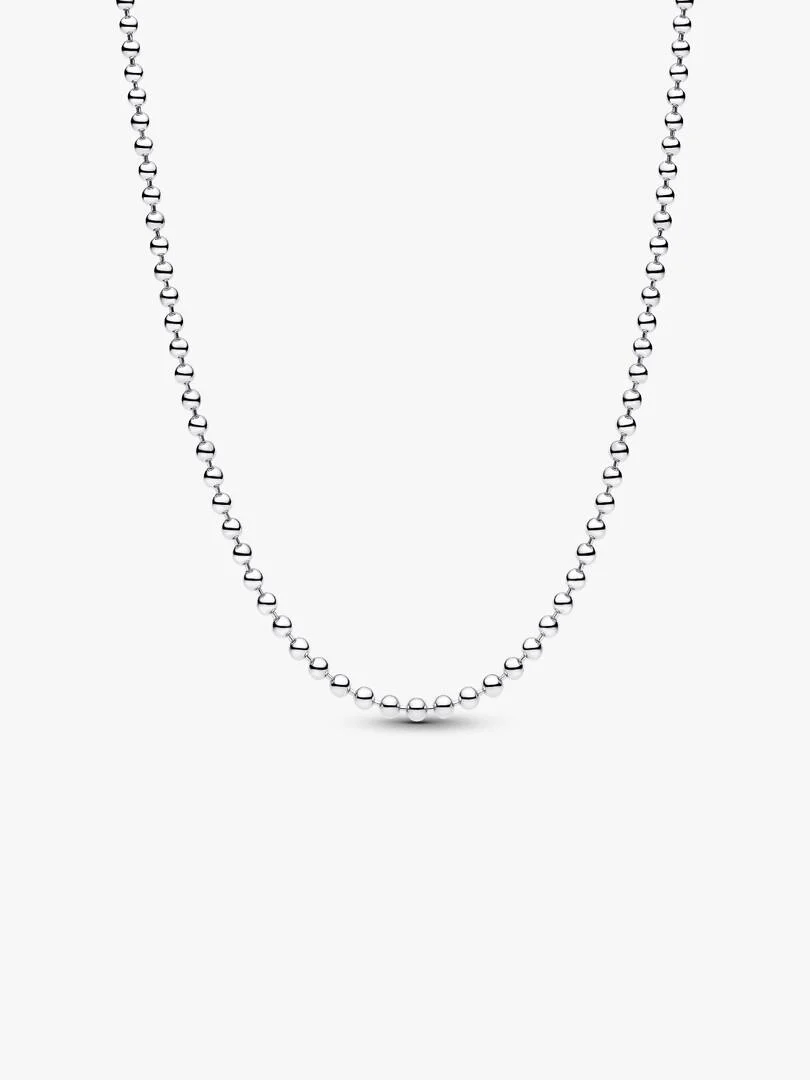 Da un toque elegante a tu look. Nuestra cadena de cuentas creada en plata de primera ley aportará una textura moderna y brillo a cualquier outfit. Llévalo solo o adórnalo con hasta tres charms o colgantes.