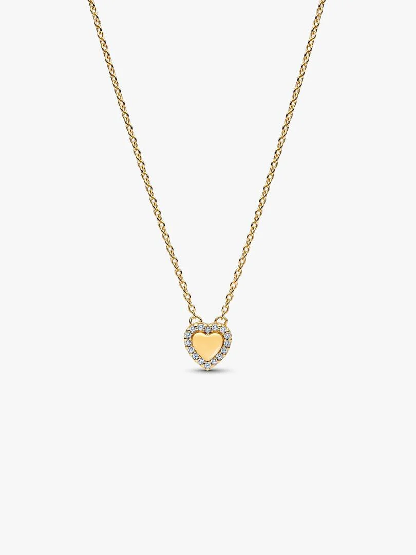 Lleva el amor siempre cerca. Nuestro collar creado con un recubrimiento de oro de 14k se presenta en el centro un corazón grabable enmarcado por circonitas cúbicas transparentes. Fijado a una delicada cadena de cable, se ha diseñado para que lleves cerca del corazón nombres, fechas o sentimientos.