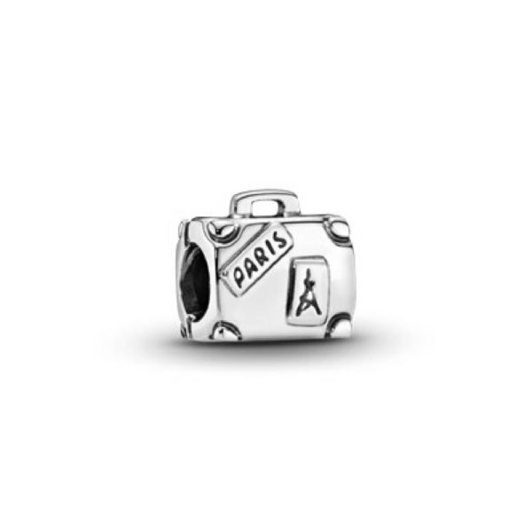 Muestra tu lado divertido y aventurero con este charm en forma de maleta. Elaborado esmeradamente con plata esterlina, el estilo acabado a mano está detallado con pegatinas y un asa para una versión realista del equipaje de vacaciones. Dale significado en tu brazalete Pandora moments como recordatorio de un viaje a un lugar especial.