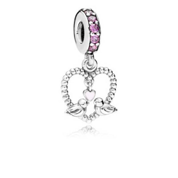 Pandora Birds silver dangle with pink enamel and fancy purple cubic zirconia 797316CFP