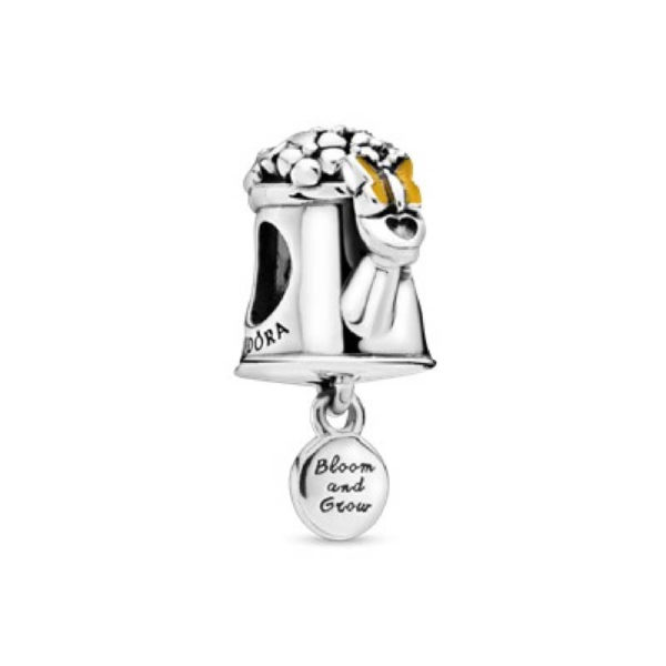 Haz que tu pulsera florezca con estilo con este dije de regadera en plata de ley. Rematado con bonitas flores coloreadas con esmalte aplicado a mano, presenta una mariposa, un trébol de cuatro hojas y una mariquita para acercar la naturaleza a tu estilo. El grabado dice “Florece y crece” como un recordatorio para florecer. Úselo en su pulsera Pandora Moments favorita o agréguelo en un collar como colgante.