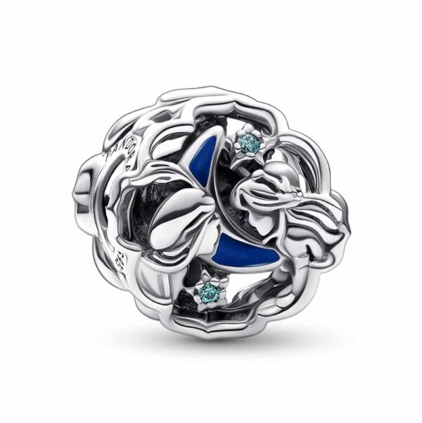 Celebra el 30 aniversario de Aladdin de Disney con este charm lleno de historias, elaborado en plata de ley. El diseño en filigrana muestra la icónica escena de Aladdin visitando a Jasmine en su balcón, frente a una luna con un esmalte que brilla en la oscuridad, lo que crea un efecto mágico en la oscuridad. En el reverso del charm aparece el Genio, con los brazos cruzados y su característica sonrisa, rodeado de circonitas cúbicas de color verde azulado, engastadas en forma de estrella. Coloca este charm lleno de historia en tu pulsera favorita.
