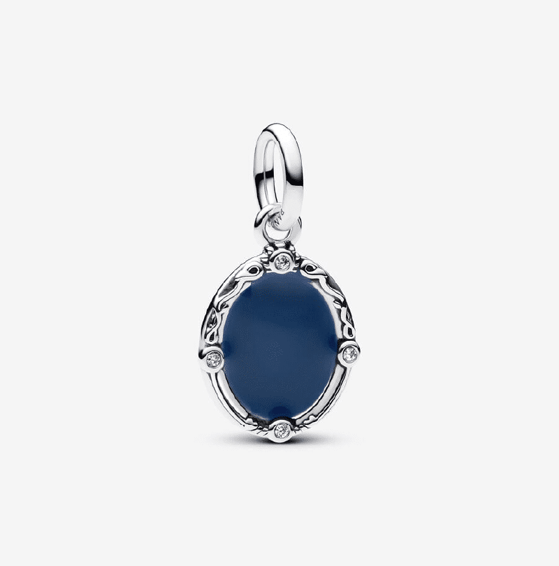 Luce tu amor por Blancanieves de Disney como nunca antes con nuestro nuevo charm inspirado en el Espejo Mágico. Con esmalte azul intenso y un marco de plata de ley, no todo es lo que parece: al calentarse, revela la cara del espejo interior, como por arte de magia. Date un capricho o sorprende a tu fan de Disney con esta pieza coleccionable.