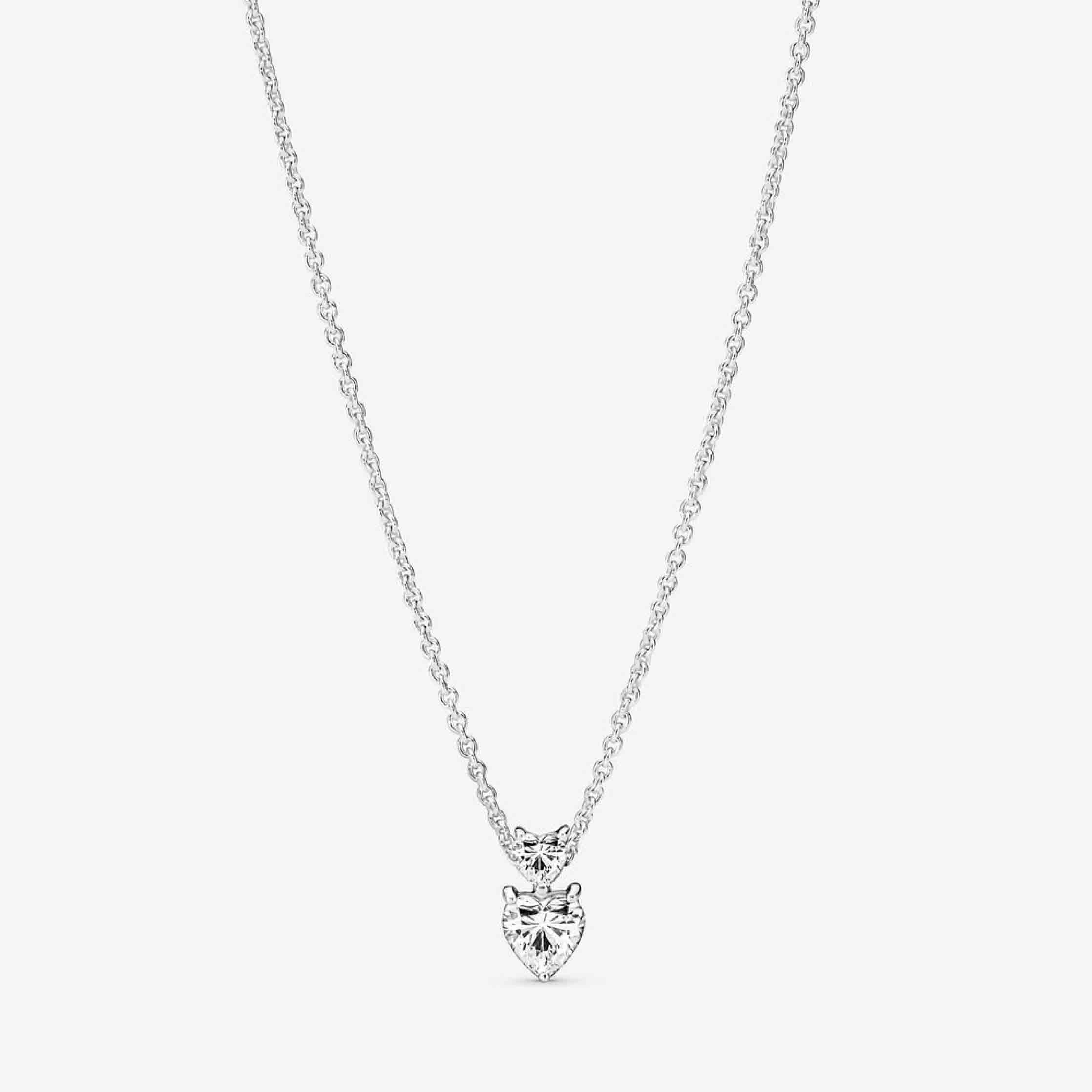 Pandora Double Heart Pendant Sparkling Collier Necklace 391229C01-EI