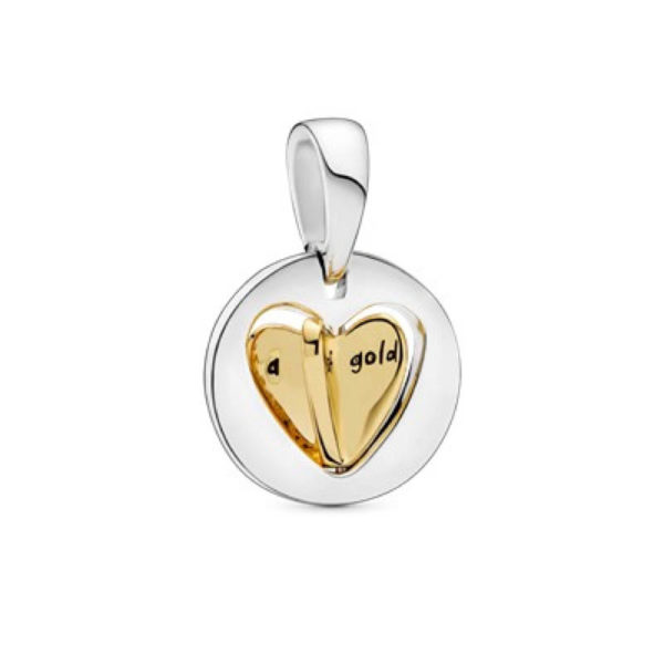 Un homenaje perdurable a una mamá amorosa, este dije colgante de dos tonos presenta un corazón giratorio tridimensional de plata esterlina 925 enchapada en oro de 18k en Pandora Shine™ suspendido de un arco circular de plata esterlina 925. Grabado con el mensaje “Dear Mom, You have a heart of gold” (Tienes un corazón de oro), es la pieza perfecta para mostrarle lo que significa para ti.