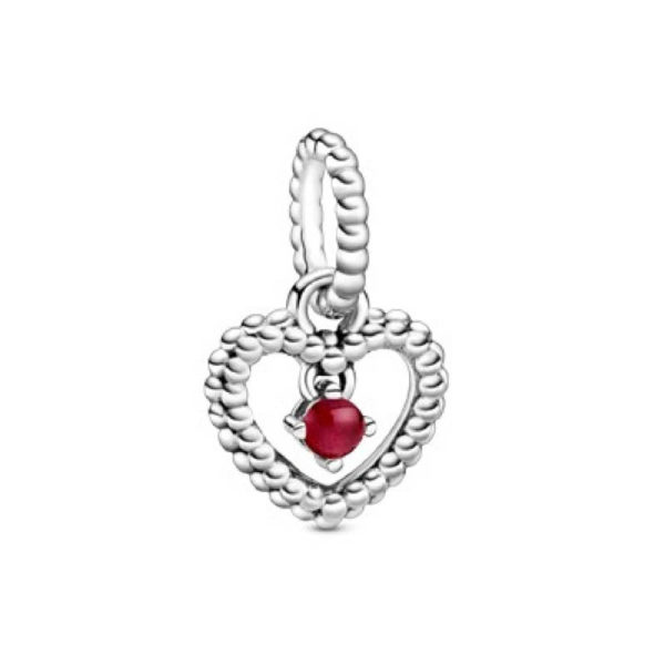 Pandora January Dark Red Beaded Heart Dangle Charm 798854C08