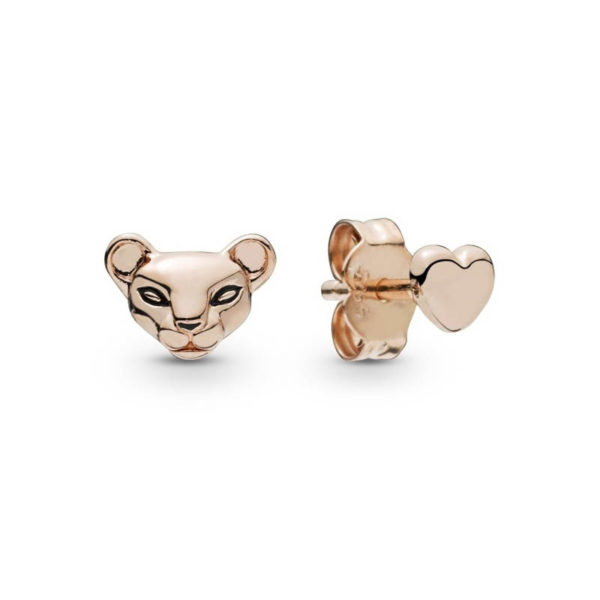 Viste tus oídos con este par de aretes de leona en nuestra exclusiva mezcla de metal chapada en oro rosa de 14k. Los pendientes Pandora Rose rosa rubor que no combinan tienen una cabeza de leona, tocada con características de esmalte negro, y un delicado corazón pulido a la perfección. Use los tachuelas como un par o como parte de una pila de aretes múltiples.