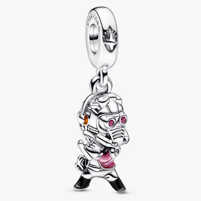 Star-Lord, creado en plata de primera ley, se presenta con detalles de esmalte aplicado a mano para destacar sus auriculares, su chaquetas y las botas. Siempre dispuesto a salvar a sus amigos, sostiene su Quad Blaster, su Walkman y lleva puesto su icónico casco decorado con brillantes gemas rojas en los ojos. Los laterales de la anilla se han embellecido con las inscripciones “STAR-LORD” (Señor de las estrellas) y “LEGENDARY OUTLAW”, que también presentan un grabado del emblema de los Guardianes de la Galaxia en la parte delantera. Amplía tu colección de Marvel x Pandora con Star-Lord para darle un toque de acción a tu estilo.