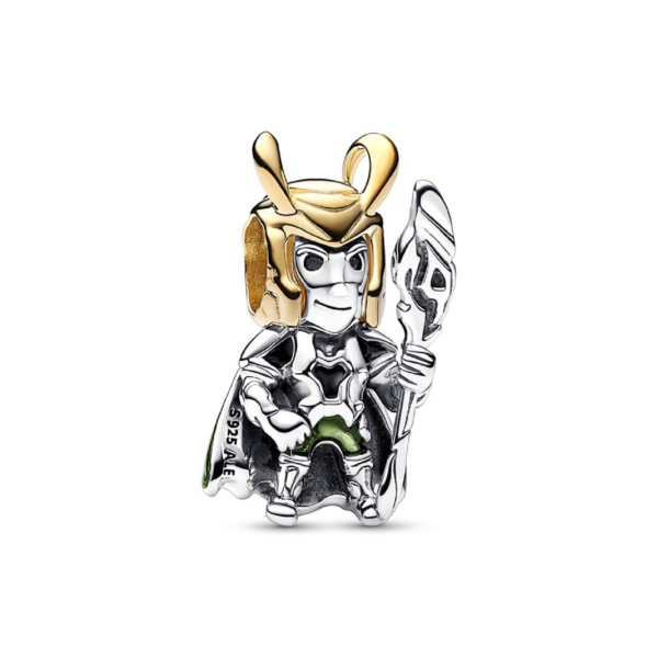 Añade un toque de travesura a tu pila con el Charm Loki de MARVEL. Si Loki es tu personaje favorito, ¡estás de suerte! Nuestro dije de plata esterlina muestra al Dios de las Travesuras vistiendo su icónico uniforme y presenta detalles faciales realistas, así como un casco con cuernos en nuestra exclusiva mezcla de metales bañada en oro de 14k. También lleva una armadura pulida muy detallada, sostiene un cetro y una capa verde brillante con esmalte transparente aplicado a mano. Di sí a la aventura agregándolo a tu colección o regalando Loki al fanático de Marvel en tu vida.