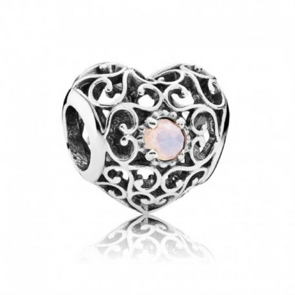 Pandora Corazones natales, octubre, cristal rosa opalescente