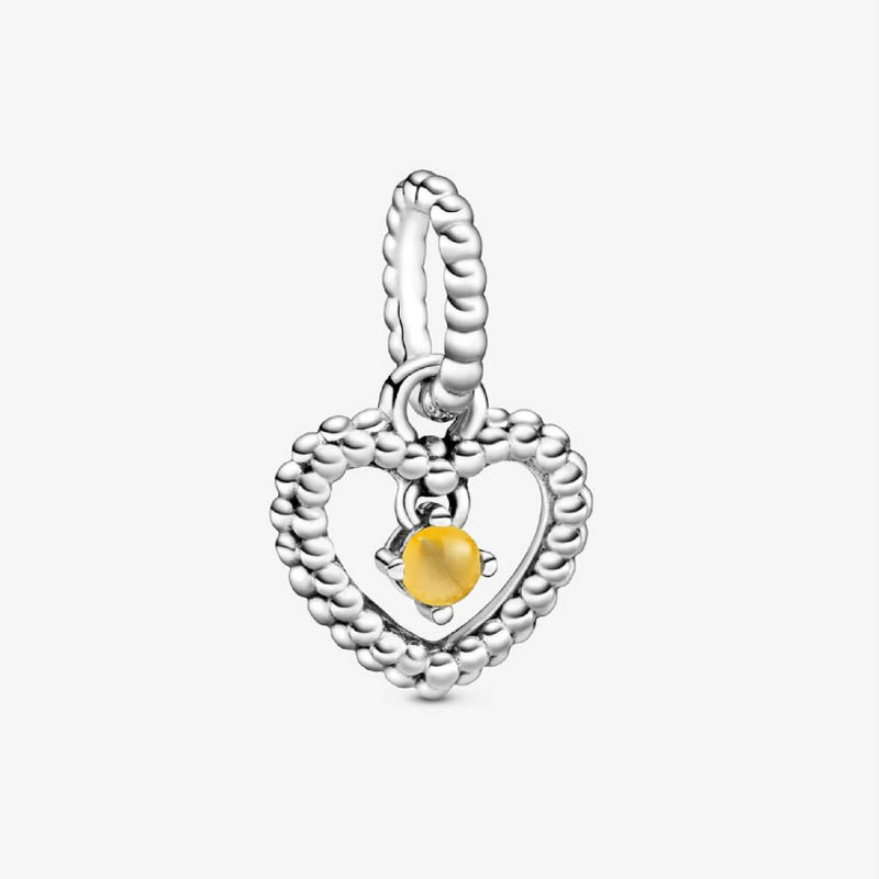 Pandora November Honey Beaded Heart Dangle Charm 798854C11