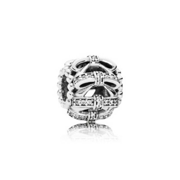 Pandora Openwork bow silver charm with clear cubic zirconia 791779