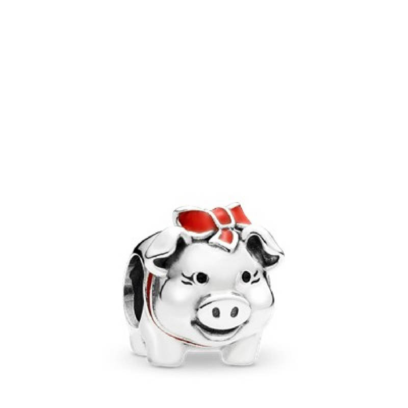 Pandora Piggy bank silver charm with black and red enamel 791809ENMX