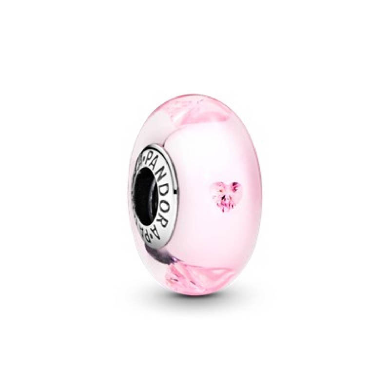 Un encanto innovador y hermoso de PANDORA, que combina cristal de Murano rosa, plata esterlina y circonitas rosadas en forma de corazón.