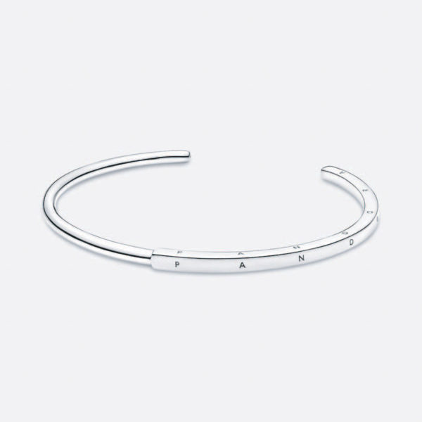 Eleva el tono de tu look con la Pulsera Rígida Pandora Signature I-D. Esta pulsera rígida, con un perfil semi-cuadrado y semi-redondo, se presenta acabada a mano en plata de primera ley. El perfil redondo pulido de la pulsera cambia en el centro a un perfil cuadrado de mayor tamaño cuyos tres laterales exteriores se han decorado con el logo de Pandora. Cada extremo de la pulsera rígida se ha embellecido con el monograma de la corona de la O de Pandora. La pulsera rígida ofrece un tamaño preciso que facilita un ajuste perfecto y no se ha diseñado para que sea necesario doblarla ni girarla al quitarla y ponerla.