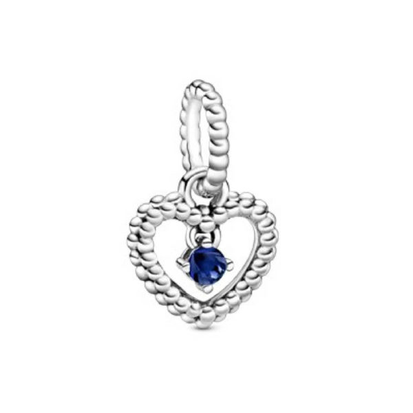 Pandora September Sea Blue Beaded Heart Dangle Charm 798854C12