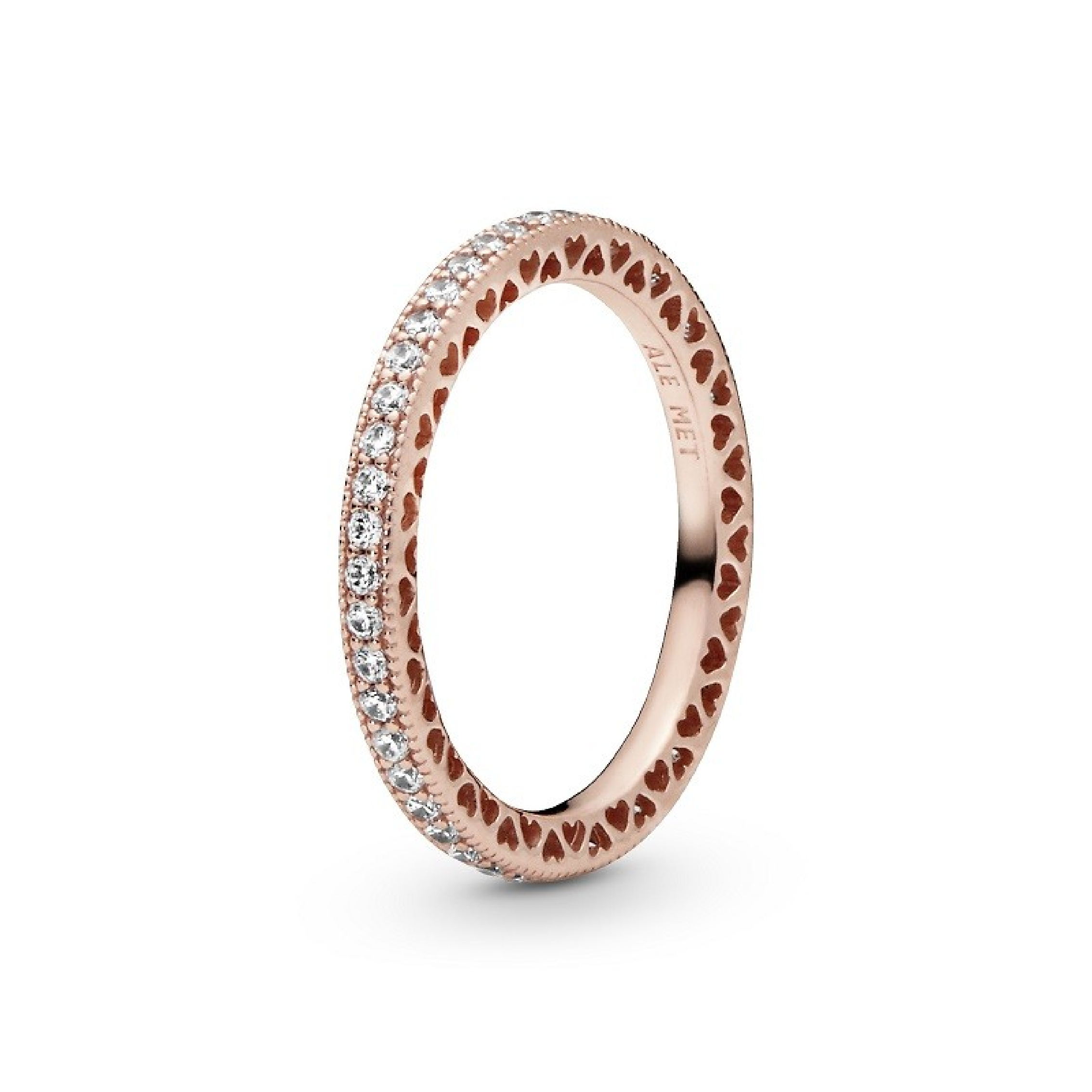 Exprese el verdadero deseo de su corazón con este anillo Sparkle & Hearts. Acabado a mano en baño de oro rosa de 14k, este elegante estilo combina maravillosamente deslumbrantes piedras de circonita cúbica con delicados corazones tallados. Muéstralo solo o mézclalo y combínalo con otros anillos apilables de Pandora para crear un juego elegante de texturas.
