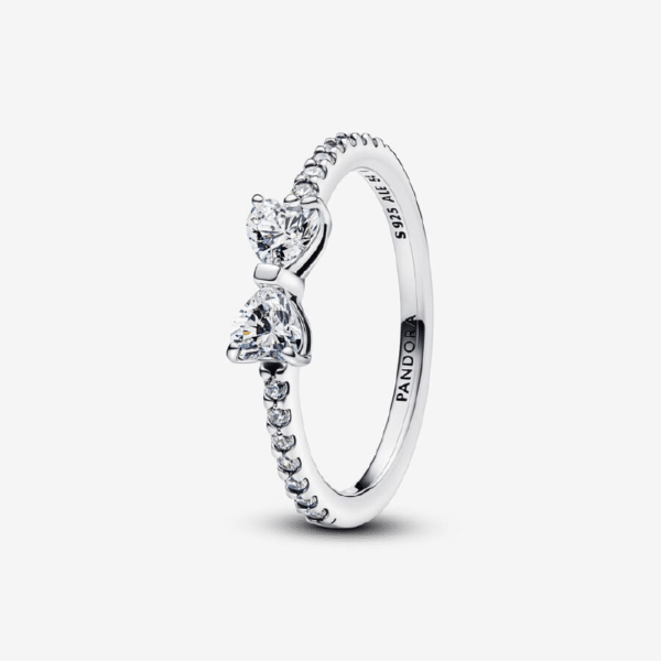 Luce un diseño delicado con el Anillo Lazo Brillante. Dos piedras en forma de corazón forman un lazo en el centro de este anillo de plata de ley, que también presenta una hilera de pavé en la mitad superior. Con un estilo dulce y femenino, este anillo inspirado en un lazo está diseñado para lucirse solo y lograr un look minimalista que lo hace único.