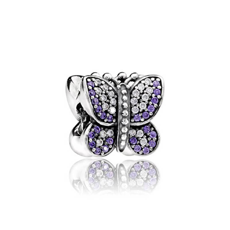 Un divertido clip de mariposa de plata de ley con circonita morada.